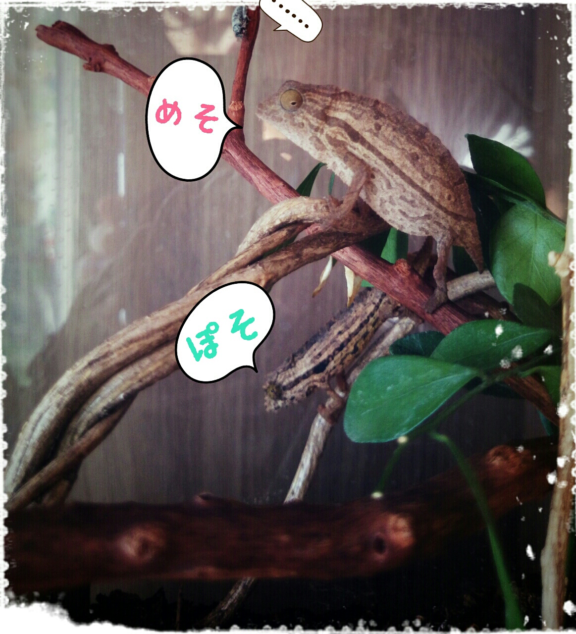 ワタシは次の仕事が決まらず、4ぴきに増えたコノハカメレオンの観察がし放題~(*´v`)